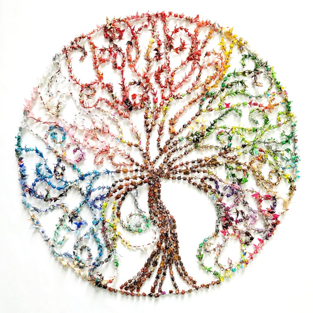 Du 5 octobre 2025 au 4 janvier 2026, mon Arbre de l’Espérance, composé de plusieurs centaines d’origamis miniatures, est exposé à la Cathédrale de Créteil. Il se cache d’ailleurs dans le chiffre 12 qui figure sur l’affiche : l’avez-vous reconnu ?